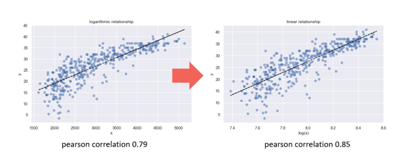 Logarithmierung der Einflussgröße zur Verbesserung des linearen Zusammenhangs