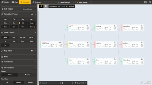 - Analysen: Verstehen Sie die Auswirkungen von Änderungen an einem oder mehreren Werttreibern auf die operativen oder finanziellen Ergebnisse.